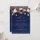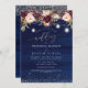Flores de aquarela, rosas bordados e peônias de madeira rústica em marinho azul e jarras de pedreiro. Acentuado com o elegante e moderno falso guião dourado manuscrito Convite de Casamento. Cor de fundo DIY.
