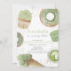 Este convite de aniversário de matcha bonito apresenta rosquinhas matcha, um cupcake matcha, um sorvete matcha macaron e matcha em tons rosa pastel. O verso apresenta um plano de fundo verde mate com aspersores. Personalize-o para as suas necessidades. Você pode encontrar produtos correspondentes na minha loja.