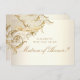 Peça à sua donzela para estar no seu casamento em estilo com este convite personalizado de dourado e marfim, acentuado por um vintage faux gold floral damask flourish e um roteiro elegante num fundo brilhante. Desenhada por Susan Coffey.
