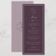 Mauve Plum monogram wedding long menu card for an elegant Old Money wedding reception. This refined mauve and deep plum menu reflects timeless European estate aesthetics and classic luxury stationery style, perfect for a romantic traditional bride.