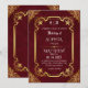 Medieval wedding invitation royal burgundy with gold frame ornate on with a gold ink pour effect (the gold is a digital effect, not real foil!) and white modern calligraphy. Classy and elegant, moody and romantic wedding invitation.