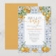 Bring the warmth of the Italian coast to your celebration with our Mediterranean-inspired baby shower invitation, where timeless charm meets modern elegance. A stunning background of watercolor maioliche tiles in rich blues with soft orange accents sets the scene, beautifully echoing the hand-painted oranges that delicately adorn the design. The artistic details feel sun-drenched and joyful, while the clean, modern typography adds a refined contrast that keeps the overall look sophisticated rather than busy. An elegant white rectangular frame allowing the customizable text to stand out with clarity and grace. Our invitation blends vibrant Mediterranean character with polished contemporary style, making it perfect for a chic, unforgettable baby shower celebration.