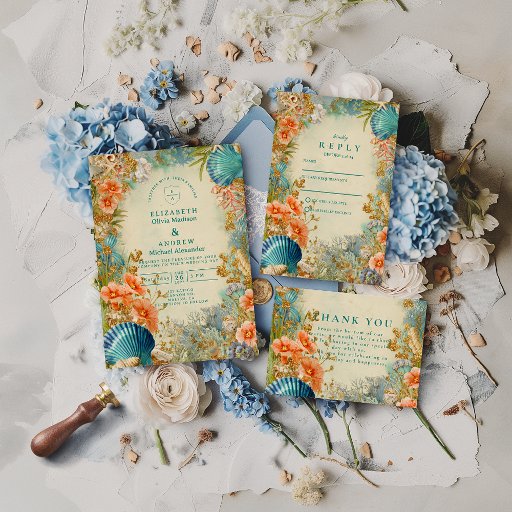 Convite Mediterranean Seashell Elegance Wedding