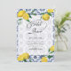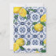 Convites de chá de panela de Azulejo azul-limão mediterrânico.