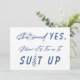 O melhor cartão de apresentação moderno, com uma escrita manual moderna, com um escrito branco, "Ela disse sim, agora é hora de se adequar", e um anel de noivado rabiscado e uma gravata riscada. +++++++++++ Fácil de personalizar no verso com o seu texto e assinatura. ++++++++++++++++++ A simples caligrafia o torna adequado para qualquer tema moderno de casamento. +++++ Se precisar de uma cor específica correspondente à paleta, envie uma mensagem (veja abaixo).