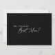 Este clássico convite para a melhor proposta de casamento negro é perfeito para o seu elegante casamento moderno. Esta design apresenta uma caligrafia simples branca, colocada sobre um fundo preto escuro para corresponder ao seu casamento clássico tradicional ou ao casamento de boho minimalista no primavera, verão, outono ou inverno. Por favor, sinta-se à vontade para nos contactar com quaisquer perguntas sobre esta design.