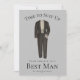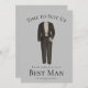 O terno elegante vintage, apropriado para um casamento de gravata branca - um smoking preto, camisa branca, gravata branca de arco, colete branco de corte baixo, luvas brancas - é de uma boneca de papel vintage, feita de 1910, "A família do papel lettie Lane", agora no dominio público. O fundo é cinza. Acima do traje há o texto arquivado "Hora de se adequar". Abaixo do terno, há o texto: Seu serviço como Melhor Homem é solicitado. Ambos estão em bonés negros, as palavras Melhor Homem escrito em fontes maiores. No verso, há uma mensagem em um script preto de escrita manual.