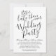 O guião tipográfico do moderno texto simples mono-negro no convite de casamento poste do design branco é mais lento do que nunca festa de casamento. Simples design moderno contemporâneo, personalize com seu próprio local de casamento atrasado após a festa de casamento, noivas e nomes de noivos e responda detalhes na frente e sua foto favorita de casamento do dia do seu casamento no sentido inverso. Produtos de casamento e outras opções de cores disponíveis na loja. © Design por Sarah Trett para www.mylittleedenweddings.com