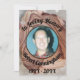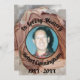 Este cartão foi concebido para homenagear a memória de alguém de um Serviço Memorial ou de um Funeral. A foto é configurada como um modelo para ser substituída pela foto da que está sendo lembrada. Uma foto de um pedaço de madeira petrificada é o fundo deste cartão. "In Loving Memory" curve em torno da foto. O nome da pessoa se curva na parte inferior da foto. Na parte inferior do cartão estão o ano de nascimento e o ano de morte. Na parte de trás está a foto petrificada de madeira com um poema no centro. Este cartão pode ser utilizado num Serviço Memorial ou ser enviado a quem não puder assistir ao serviço. As palavras são criadas para serem personalizadas. O design também pode ser personalizado com sua própria foto, se desejar. Se precisar de ajuda para personalizar, entre em contato comigo.
