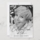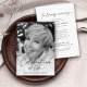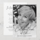 Esta é uma celebração moderna, elegante e mínima de um convite à vida para honrar a vida do seu amado. O design usa uma simples fotografia em preto e branco e um roteiro elegante de caligrafia. Este convite pode ser facilmente personalizado com sua própria foto e texto para criar um tributo especial para o funeral, memorial ou celebração da vida de seu ente querido usando o modelo fornecido. Entre em contato com o designer para obter informações sobre este design ou sobre produtos correspondentes.