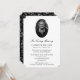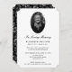 Serviço Elegante de memórias de prata e preto/comemoração da vida/convite para funeral com foto na frente e padrão floral no verso. Personalize facilmente este cartão elegante online.