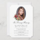 Serviço Elegante de memorial floral vermelho/celebração de vida/funeral/em convite de memória amorosa com uma foto adornada com rosas vermelhas.