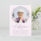Esta é uma carta de convite ao funeral elegante e moderna para celebrar a vida do seu amado. A design apresenta uma bela fonte caligráfica e delicada coroa floral com botânicos rosa, roxo, brancos, verdes e prateados que armam uma foto. Este convite pode ser facilmente personalizado com sua própria foto e texto para criar um tributo especial para o funeral, memorial ou celebração da vida de seu ente querido usando o modelo fornecido. Entre em contato com o designer para obter informações sobre este design ou sobre produtos correspondentes.