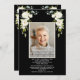 Este design apresenta flores brancas de aquarela, uma foto, sobre fundo preto. Use a ferramenta Personalizar para adicionar suas informações. Para obter itens correspondentes, visite minha Comemoração Floral da Coleção de Simpatia de Vida.