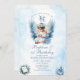 Convite Menina Batismo e Cruz Floral Azul primeiro anivers