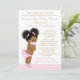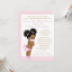 Convite de chuveirinho de bebê drive-by com adorável menina afro-americana com cabelo afro fofo usando máscara e roupa rosa em um fundo rosa e dourado. Esse chuveirinho de bebê drive-by é facilmente personalizado para o seu evento simplesmente mudando o texto. Você pode alterar a cor do texto, escolher o estilo da fonte, a redação, etc.