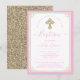 Convite Menina Bebê Rosa Ouro Leve Elegante Batizado