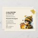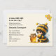Um convite para chás de fraldas com uma imagem fofa. Uma garota com uma fantasia de abelha em crochê com uma abelha ao lado dela. Vendo um pote de mel.
