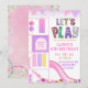 Convite de Aniversário Menina Brilho Rosa Roxo Parque Infantil Interno, Vamos Brincar Convite de Aniversário Menina, Convite de Aniversário Infantil Editável