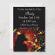 Convite de festa com uma menina colorida dançando e notas musicais no meio inferior e um fundo preto com espaço para colocar todo o texto do convite.