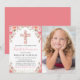 Convite Menina da Primeira Comunhão Cruz Floral Foto