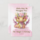 As meninas também podem ser dragões! O mais fofo pequeno dragão de olhos arregalados rosa e amarelo convidando pequenos amigos para uma festa de aniversário, e vestido com roupas de dragão (se é que você pode). Nuvens cor-de-rosa no topo e na parte inferior deste convite com texto alternado entre as cores verde e rosa.