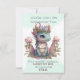 Meninas também podem ser dragões! O mais fofo pequeno dragão turquesa de olhos arregalados convidando pequenos amigos para uma festa de aniversário, e vestido com roupas de dragão (se for possível). Nuvens aquáticas no topo e na parte inferior deste convite com texto alternado entre as cores azul e roxo.