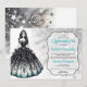 Convite Menina de Quinceañera Preto e Azul Turquesa