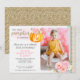 Florais femininos e doces acentuam uma abóbora brilhante de outono especialmente para o aniversário da sua menina. Perfeito para celebrações de outubro ou novembro, este design combina um estilo aquarela trendy e estética cottage chic, com um toque de textura cintilante dourada divertida.