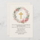 Convite Menina Dourada Cruz Rosa, Floral, Religiosa Batism