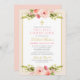 Convite Menina Dourada Floral Cor-de-Rosa Esbranquiçada da