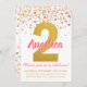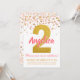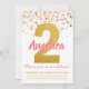 Convite Menina Dourada Rosa Confetti no Segundo Aniversári