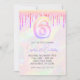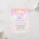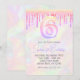Convite Menina holográfica rosa com brilho e gotas de 6 an