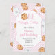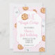 Um Cookie Duro! A festa de aniversário de Leite e Cookies convida a cor-de-rosa com biscoitos com chocolate e garrafas de leite e canudos cor-de-rosa. Primeiro Convite de Aniversário.