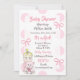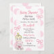Menina Loira com Bear Bear Bear Teddy Bear convites com bolinhas e arcos cor-de-rosa e branca.