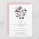 Uma jovem Floral no 1º aniversário convidada com um buquê de cor d'água pintada de flores de magnólia rosa e folhas de eucalipto juntamente com "um maravilhoso" em um roteiro delicado. A parte de trás é uma sombra coordenadora de rosa. Um convite elegante para convidar os entes queridos para a festa de primeiro aniversario da sua menina.