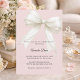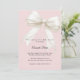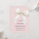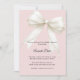 Celebre a chegada iminente de um pequeno com este elegante convite de chá de bebê rosa pó, apresentando um lindo laço decorativo com detalhes delicados de pérolas. O fundo suave rosa pó cria um visual quente, feminino e atemporal que é perfeito para uma celebração de chá de bebê elegante.