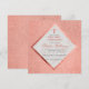 O texto está em uma moldura quadrada rosa dourado (falso metálico) e tem uma cruz rosa dourado acima dela. O nome e as palavras "Primeira Comunhão" são coloridos em uma cor rosada semelhante ao rosa dourado. O nome é escrito em uma fonte caligráfica elegante, o restante em maiúsculas. O fundo (e a parte de trás) é rosa dourado com brilho, o interior da moldura é mármore branco.