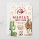 Convite de Aniversário Menina Primeiro Rodeio Cavalo Chapéu Botas
