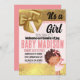 Convite Menina rosa e Dourada Convocação para Babyshower