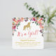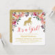 Convites de chá de bebê de adorável unicórnio com uma exibição de flores em aquarela, um unicórnio com brilho dourado e um modelo de chá de bebê moderno.