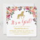 Convite Menina Unicórnio Brilho Dourado Rosa Chá de Bebê