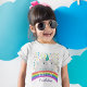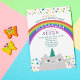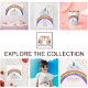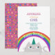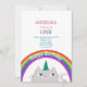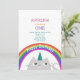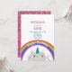 Convite de 1º aniversário simples e moderno para menina com unicórnio, gatinho, arco-íris e estrelas!