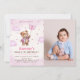 Convite Menina Ursinho Teddy Rosa Balões Primeiro Aniversá