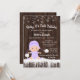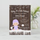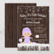 Convites de chuv de bebê de meninas com adorável bebê vestindo um traje de neve roxo lavanda com chapéu em um fundo de madeira rústica e flocos de neve. Estes convites de chuv de bebê Meninas bebê está frio lá fora são facilmente personalizados para o seu evento, basta adicionar seus detalhes.