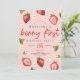Este primeiro aniversario de convite para designs de meninas bonitinhas e caprichosas apresenta ilustrações adoráveis de morango e flor rosa, e pode ser personalizado com toda a informação de que você precisa para a primeira festa do seu filho em uma tipografia bonita e colorida. O convite de "berry first" também apresenta um padrão de gingham vermelho correspondente no verso. Os convites perfeitos para fazenda de morango para o seu aniversário!