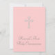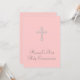 Lindo rosa pálido com cruz elegante na parte frontal e traseira do convite de menina para a Primeira Comunhão. Este convite de primeira comunhão com cruz rosa é facilmente personalizado para o seu evento, adicionando detalhes do evento, estilo de letra, tamanho e cor da fonte e texto.