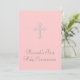 Convite Meninas Cruz Rosa Primeiro Comunhão Rosa