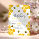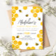 Este convite de "primeiro dia de abelha" para o primeiro aniversario das raparigas modernas apresenta um belo design de abelha de mel, com um pente de mel, e pode ser personalizado com toda a informação de que necessita para a primeira festa do seu filho numa tipografia fofa. O convite também apresenta um padrão de abas florais correspondente no verso. Os convites perfeitos para o seu aniversário de verão!