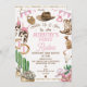 Meninas Marrom cor-de-rosa Primeiro primeiro aniversario Rodeio Convite à apresentação de primeiro aniversario de um rodeio de menina linda com um chapéu de vaquinha, bandeiras de bunda, botas de vaquinha, corda e muito mais. Este convite de aniversário temático ocidental também poderia ser usado para qualquer idade.
